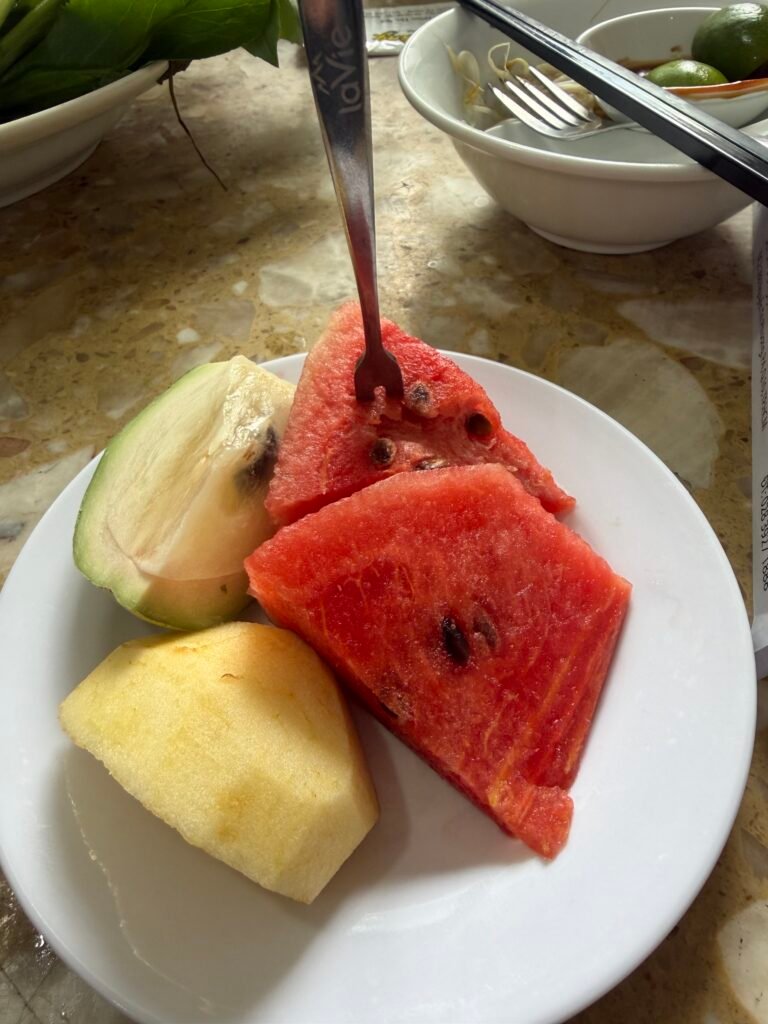 After touring the tunnels, we had lunch prepared by a lady whose family lived through the war. She served our lunch and then spoke to us about the war. She said the GI ‘s were always kind to her family and they felt safe with them. Her father was a Viet Cong and died when he was 30 leaving his wife and five children. The lady said that she had to quit school to help her mom with the chores.