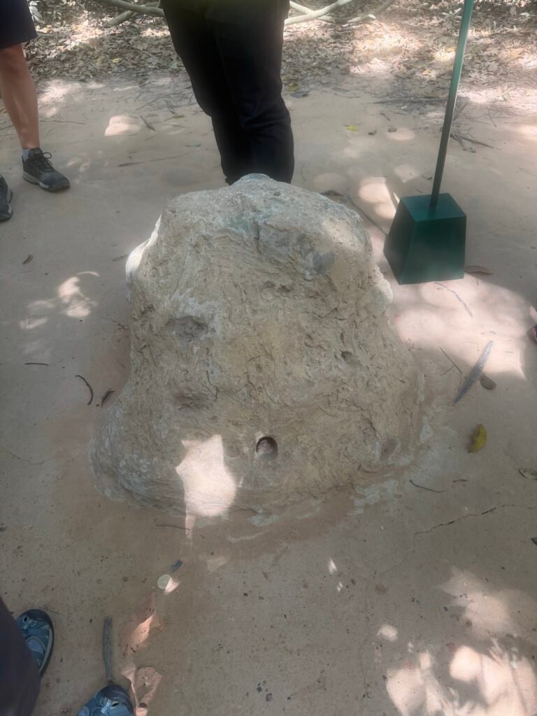 This looks like a termite nest but it is a ventilation system for one of the underground tunnels. GI’s would send dogs to sniff out the Viet Cong but the Viet Cong were clever. They would kill a GI and then put his scent from his clothing around the mound to fool the dogs.
