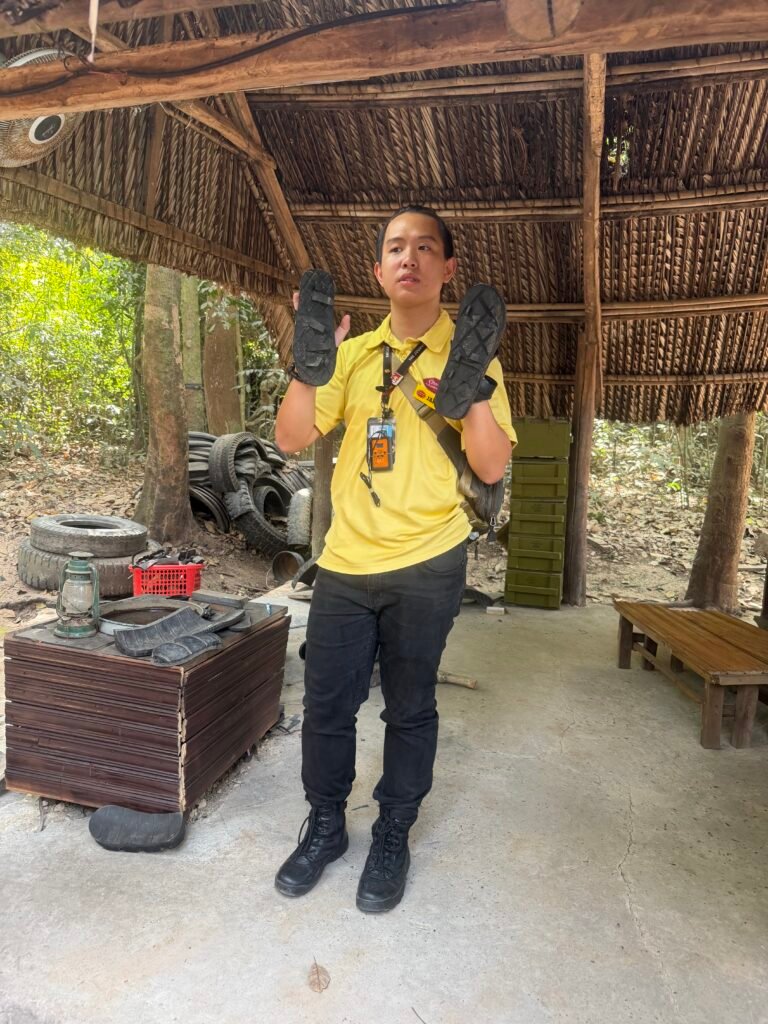 They wore sandals that they fashioned the opposite way – the toe portion to the back – so when they walked, it looked like they were walking in the opposite direction so the GI’s wouldn’t know what direction they really went.