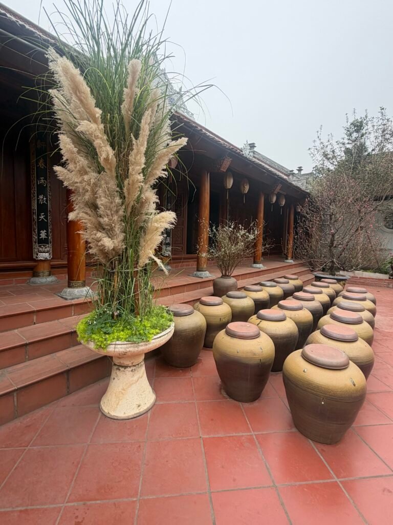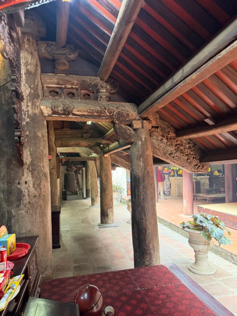 We walked through the village, stopping at a temple along the way. The construction date of the Mia Pagoda, also known as Sung Nghiem Tu, remains unknown. In 1692 a concubine in the court of Lord Trinh Trang, Ngo Thi Ngoc Dieu found the shrine deserted and ruined, so she raised the money from her family for the restoration. 400 years have passed and the pagoda has been renovated many times, but the scale and the ancient architecture are kept almost intact. Mia temple is home to a collection of 287 ancient statues, the largest of any pagoda in Vietnam.
