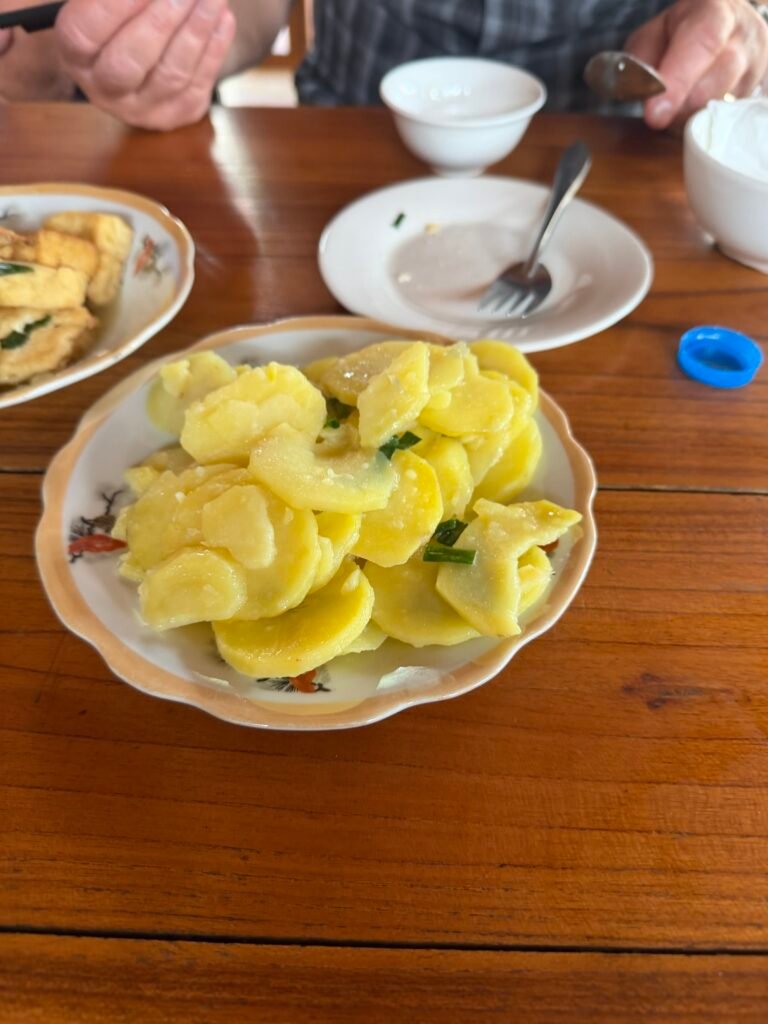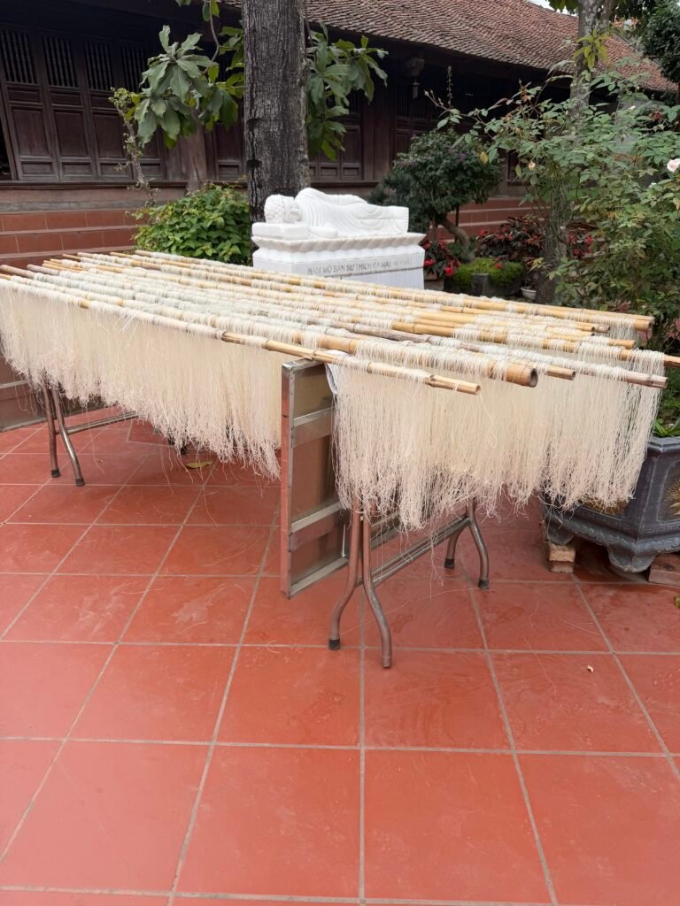 There were large earthenware crocks of fermented soy beans fermenting in the sun and we also saw noodles hanging to dry on racks outside.