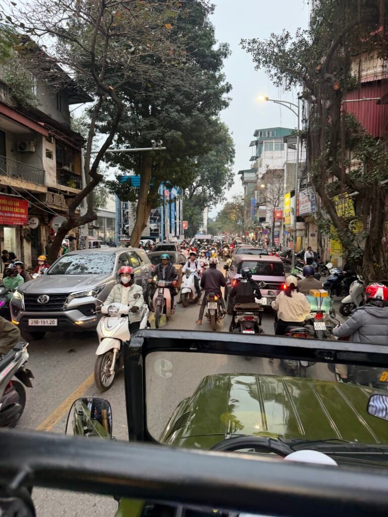 Navigating the traffic in the jeep. Yikes!!