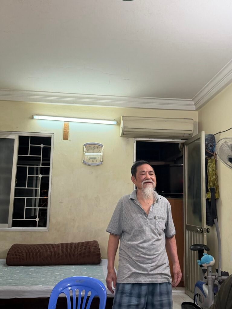 We then visited a section of the city where people live in apartments that are small and rather squalid. We climbed to the second floor and stood in the hall. A mouse scampered by and spiders were all over the place. The apartments share a bathroom… except for one apartment that had its own bathroom/kitchen across the hall from the living area. We were invited in to meet the 86 year old gentleman who lived there and who was a like a grandfather to Nam. His apartment was clean…but small. His bed was in the middle of the room and there was another room next to it that we didn’t enter. Thanh told us that room was actually illegal. The man had added the room, but it was not approved by the housing commission. At 86, I don’t think he cared. He was a vibrant man who had served in the military.