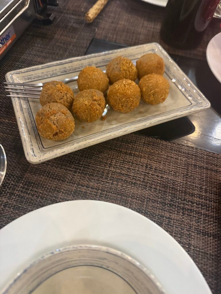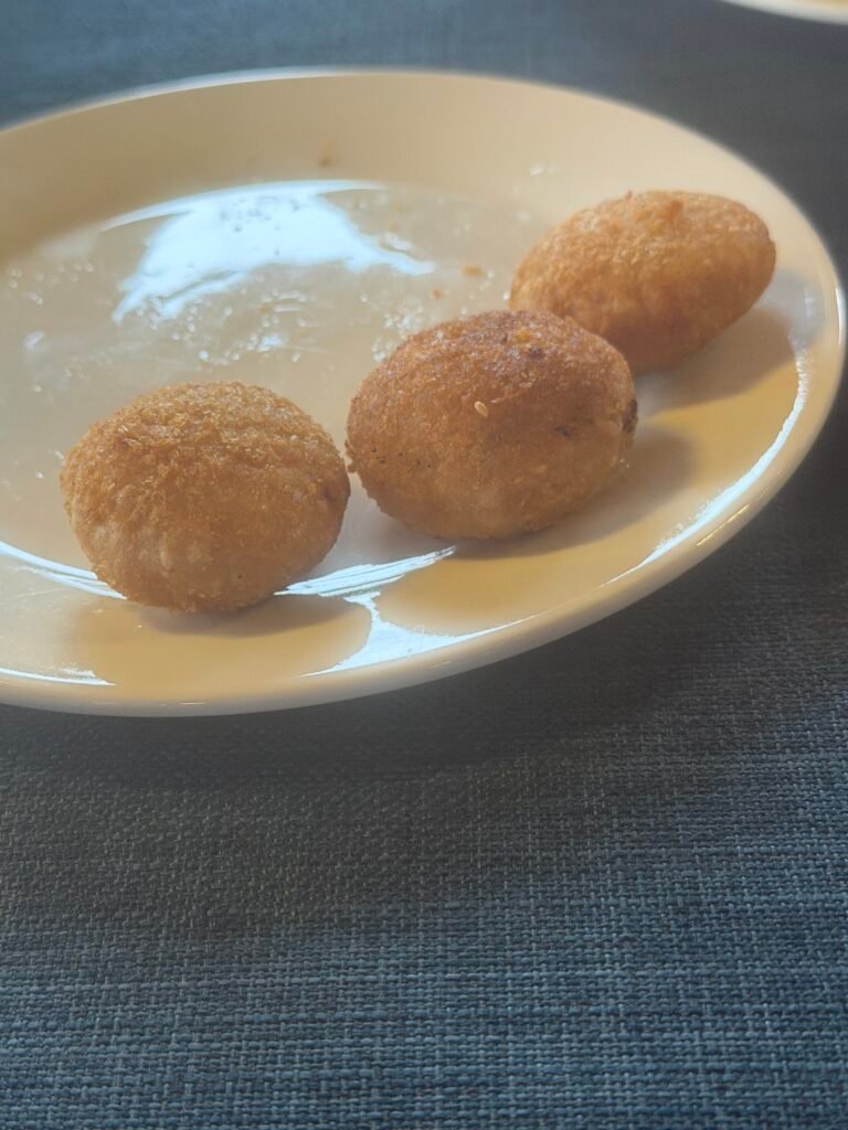 The pho noodle pillow soaking in the sauce. Next to it…fried corn.
