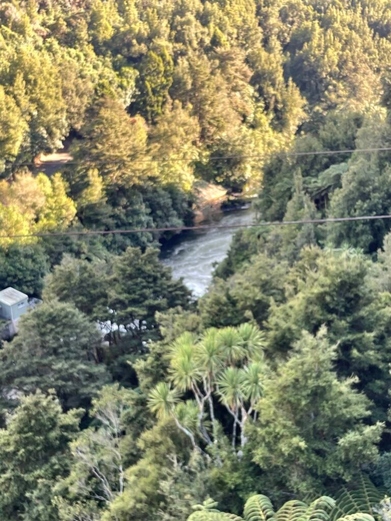 Our first stop was the Arapuni Swing Bridge, (yes…a swing bridge) located not far from the Arapuni power station. It has a span of 499 feet and is 178 feet above the gorge. I went to the bridge to see if I could walk across it. Yeah…no!!! The bridge was bouncing, the view to the bottom was death defying, and I only went one foot on it and turned around. Allan did go partway out to take a quick photo. The bridge was built in the 1920’s to allow workers access to the power station construction site.