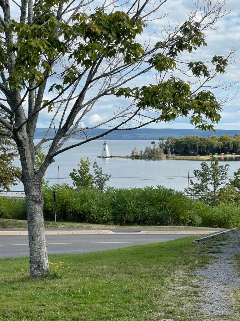 Beautiful scenery and the Kidston lighthouse, on Bras d’Or lake. The original lighthouse was built in 1875 and the present one was built in 1912. The two lighthouses stood side by side for some time. The lighthouse can only be accessed by boat; a ferry going there operates during the summer months.