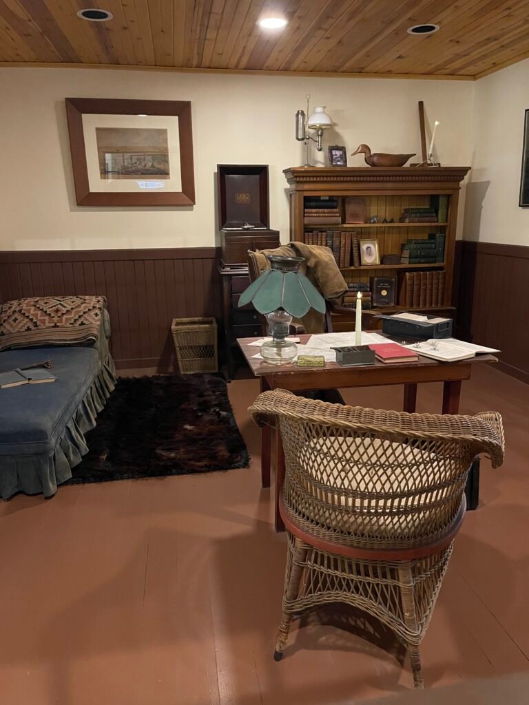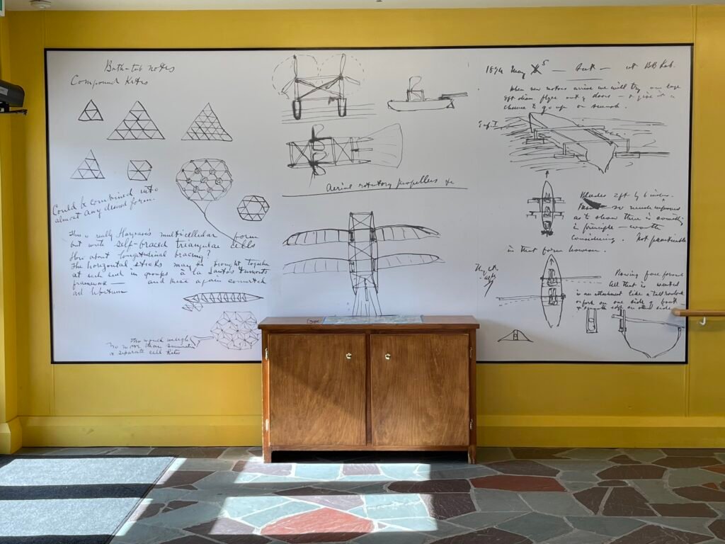 Our guide told us that Mabel and Alexander had a beautiful life together and were very much in love. Mabel was at his side as he pursued his experiments in different fields in Baddeck, Canada, where they lived and worked for 35 years in a large home called Beinn Bhreagh, which was perched on a peninsula jutting into Bras d’Or Lake. Everyday the couple would walk hand and hand down the mountain and back up again to their home…a nighttime journey at 5 pm, that became a ritual. When Alexander died, he was buried on top of the mountain where their home was. Mabel kept her hand on the coffin as it climbed the mountain at exactly 5 pm, in memory of all the times they walked hand and hand together. He died on August 2, 1923, a few days after his 75th birthday. When his funeral finished around 6:30 pm, as a mark of respect, every telephone exchange in the United States and Canada closed for a minute of silence. His wife Mabel died five months later of a broken heart.