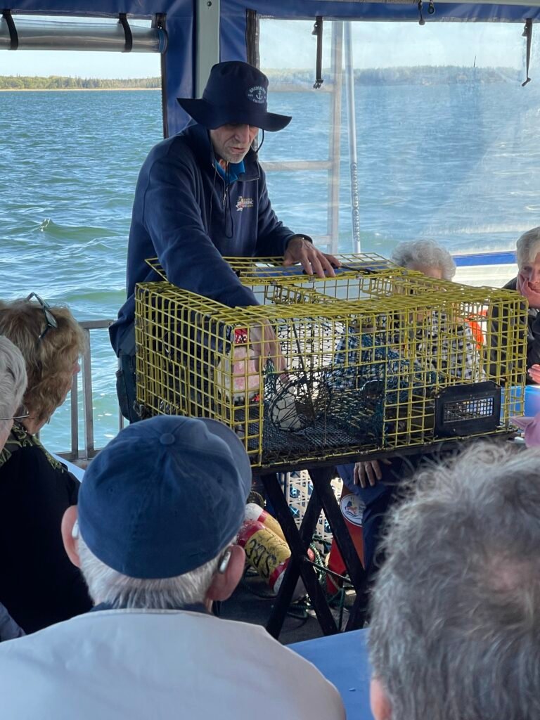 This morning we went on our bus through the countryside to the seaside town of Shediac, where we boarded a chartered boat for just our group, to learn more about lobsters and to enjoy a lobster lunch.