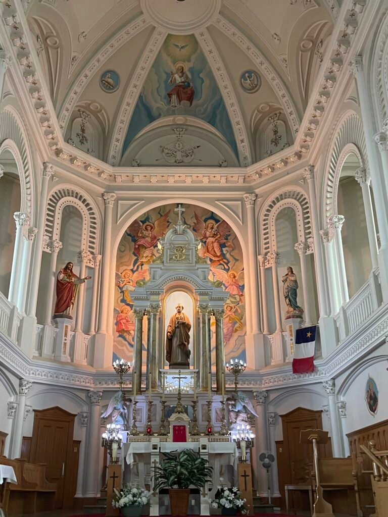 Our first stop along the trail was a visit to St. Peter’s Church. This majestic Catholic church is a major landmark along the trail and was erected under the guidance of Father Pierre Fiset in the early 1890s. It features beautiful frescoes and a very large, ornate altar. The stained glass windows to me, however, seemed out of place with the rest of the elaborate frescoes, as they were more modern looking than I thought should have been featured in the church.