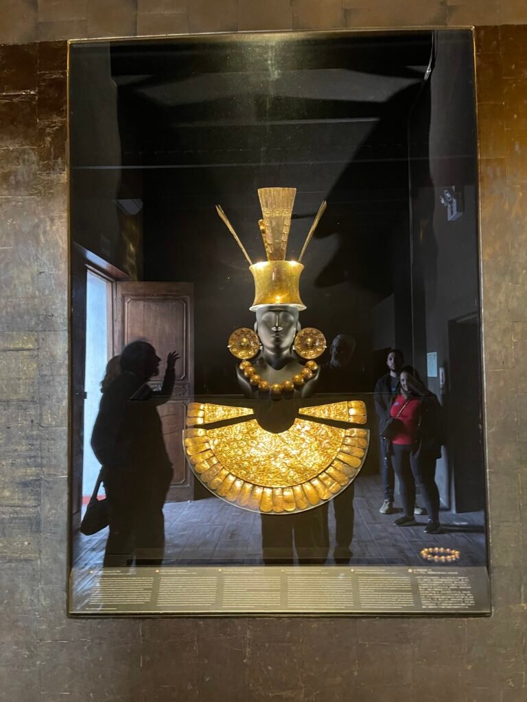 Then, we went to the Larco Museum, established in 1926. The museum is a privately owned museum and has a huge collection of pre-Columbian art, some dating back thousands of years. We saw beautiful earrings and nose rings that were the fashion at the time, as well as beautifully preserved textiles. One gorgeous textile was over 3,000 years old and perfectly preserved.