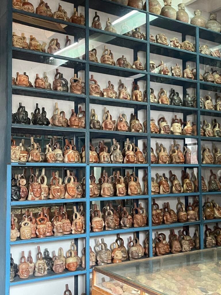 The museum is one of the first museums in the world to allow visitors to walk between storage shelves containing 30,000 catalogued ancient pottery artifacts that will eventually be displayed in the museum. Ancient Peruvian cultures represented their daily lives in ceramics, and this gallery holds the world’s largest collection of erotic ceramics that we were also able to tour. The entire collection of the museum is cataloged online as well.
