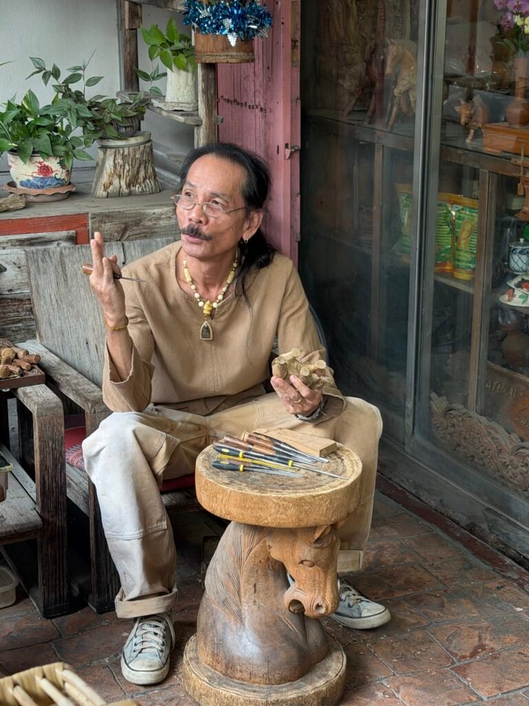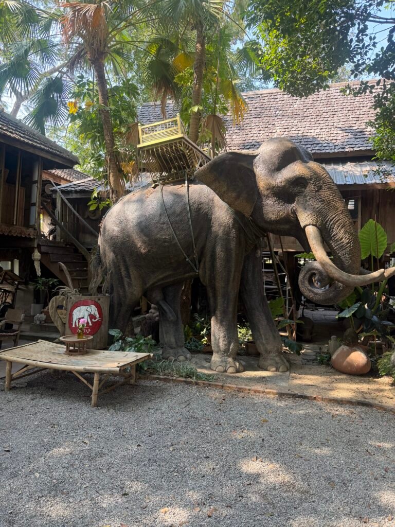 We boarded our van and drove to the “House of Many Elephants” or Baan Jang Nak. Phet Wiriya is the founder of Baan Jang Nah and is a descendant from the Tai Yong people who migrated to Lamphun province more than 200 years ago. He is a master carver, creating stunning replicas of elephants from different woods, cement, and also putting together scraps of wood to create masterpieces that are sold all over the world. The place also encourages other woods carvers to work in the shop and as we walked around the myriad of elephants, you couldn’t help but be amazed at the artistry.